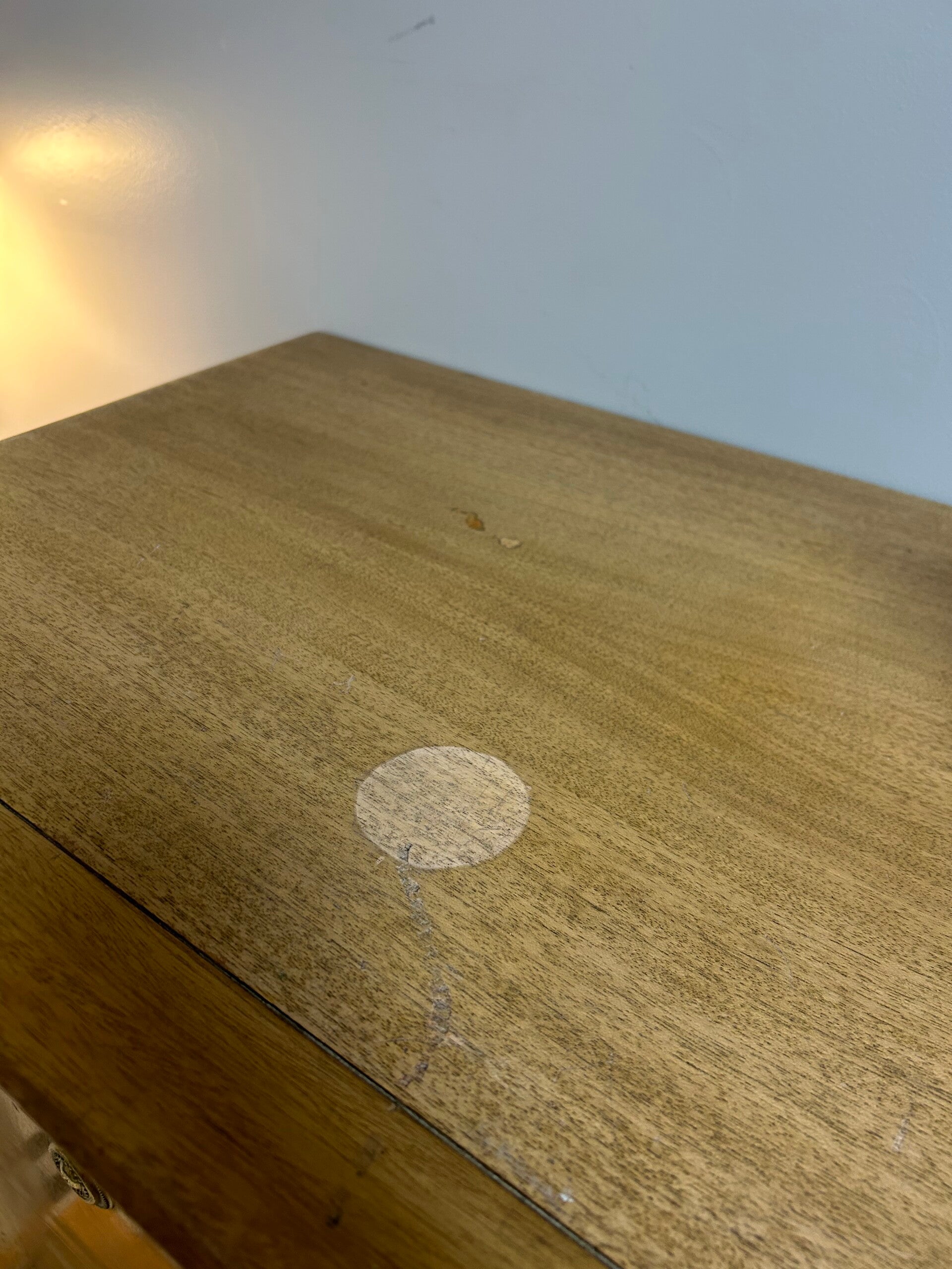 this is a very nice piece from a very clean home. the drawers slide smoothly. comes from a smoke free and pet free home. there are some blemshes on the top but still a very solid piece.
