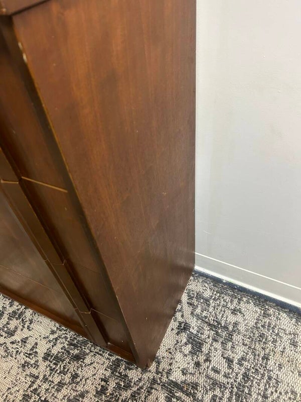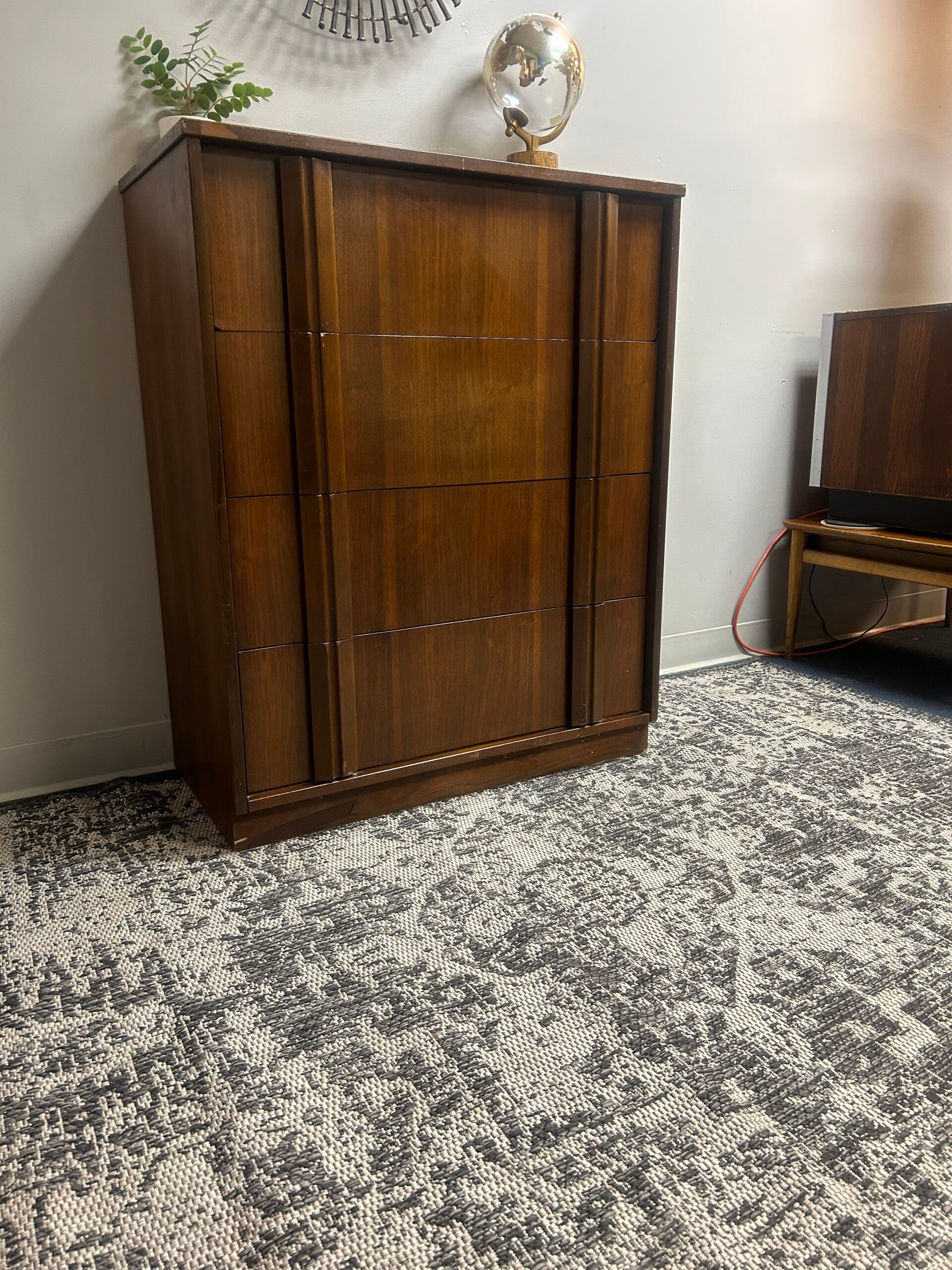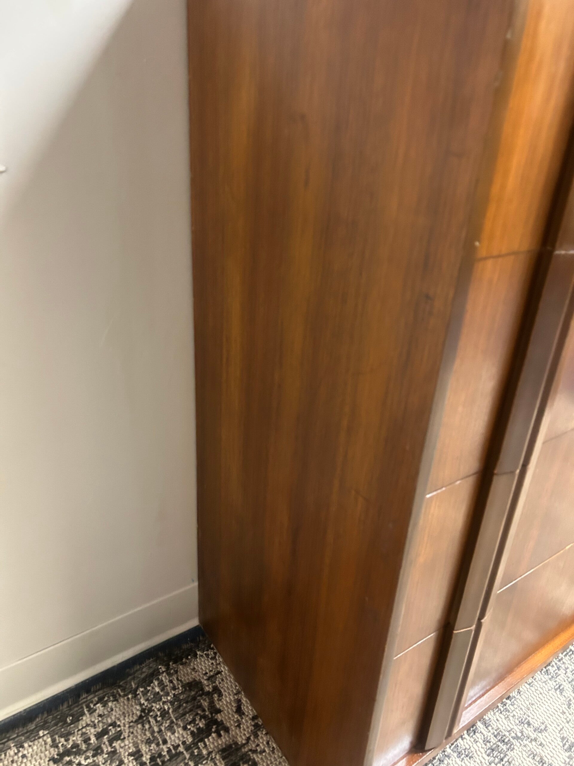 midcentury 4 drawer dresser with unique drawer pulls made by Bassett