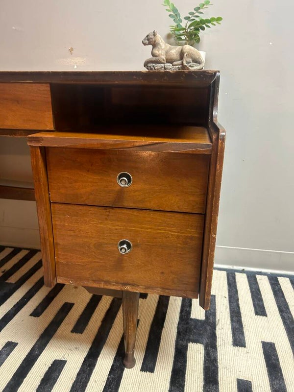 this is in great shape. The drawes open smoothly and the veneer may need some work.This comes from a smoke and pet free home.