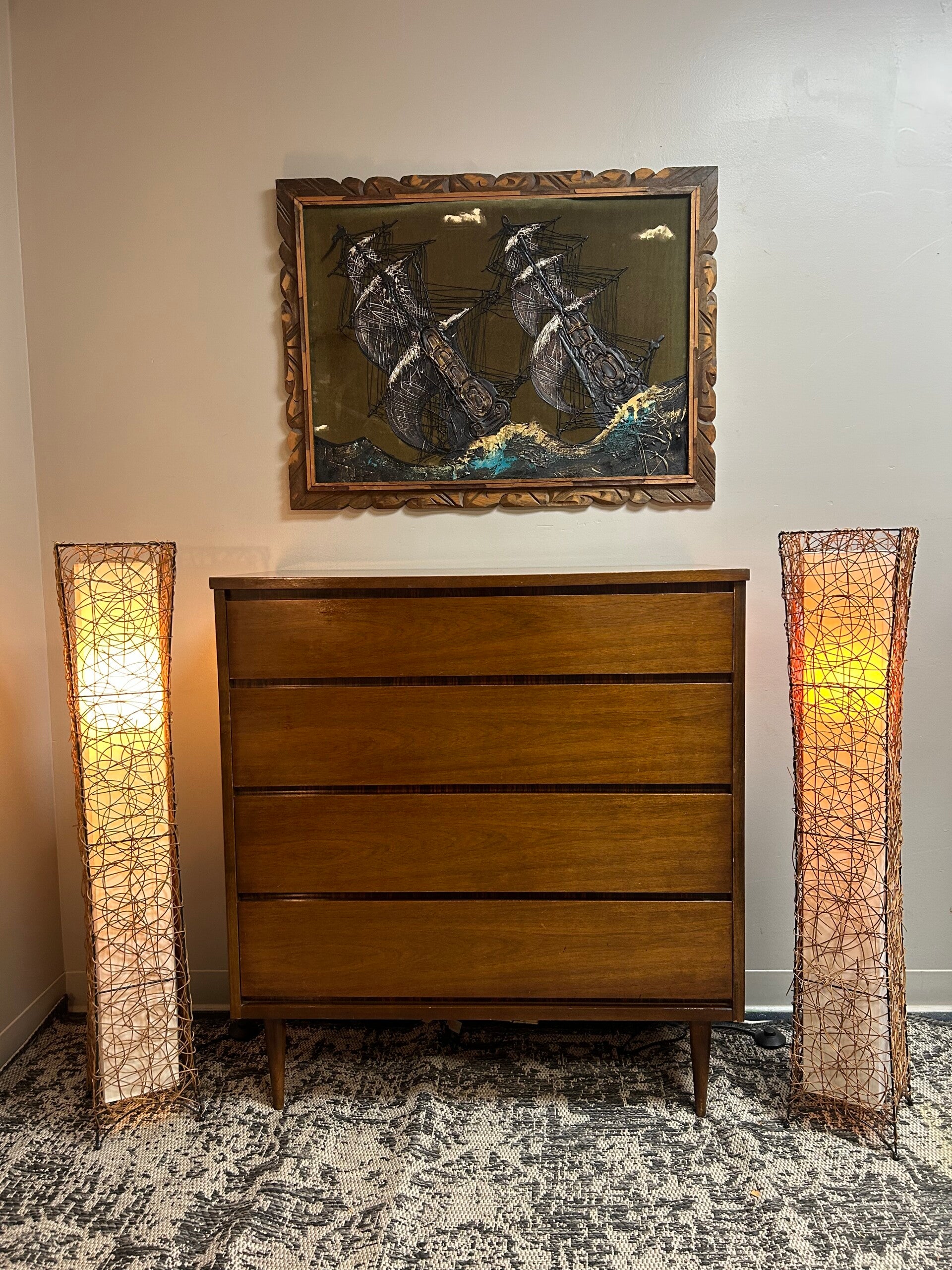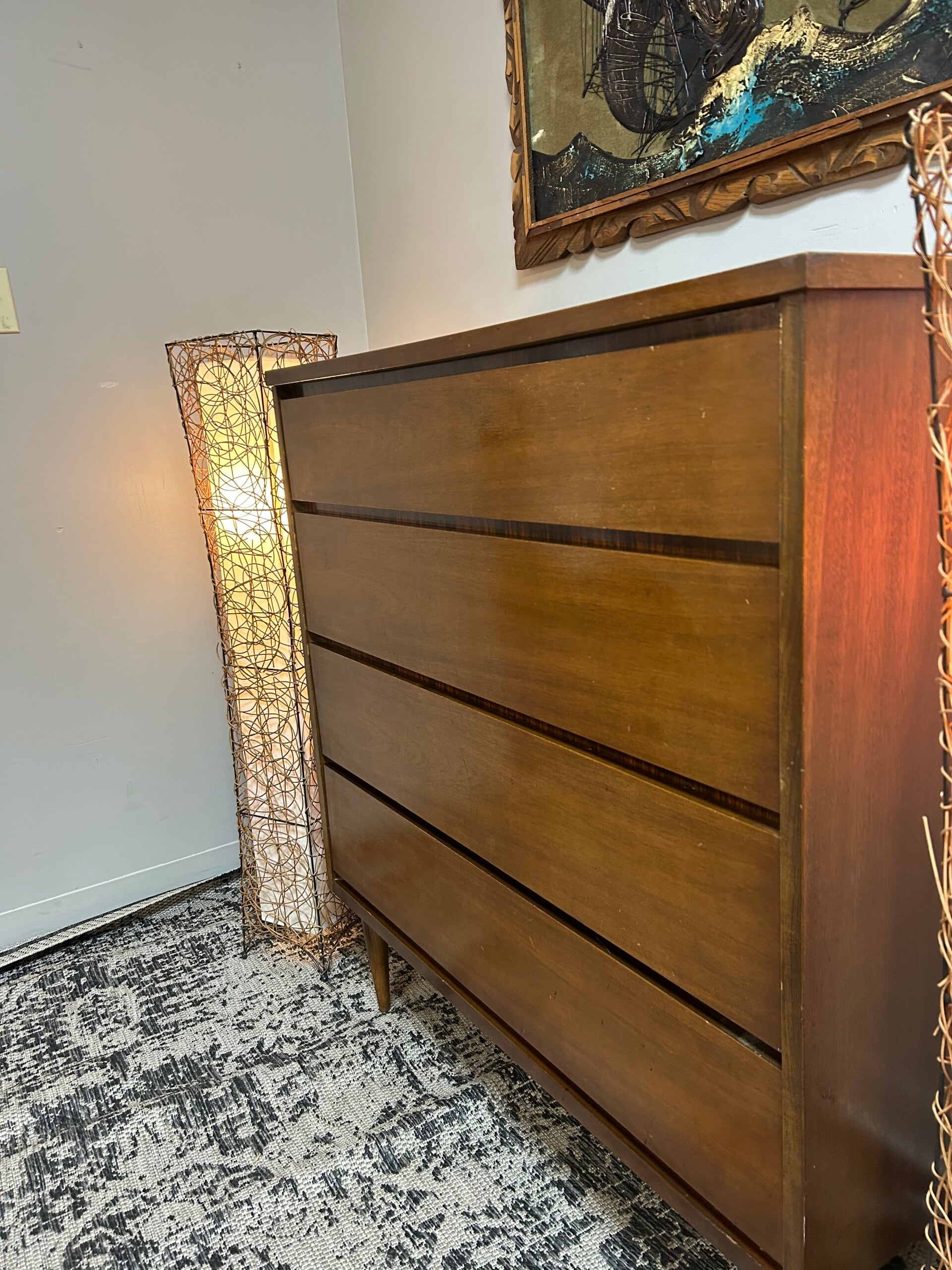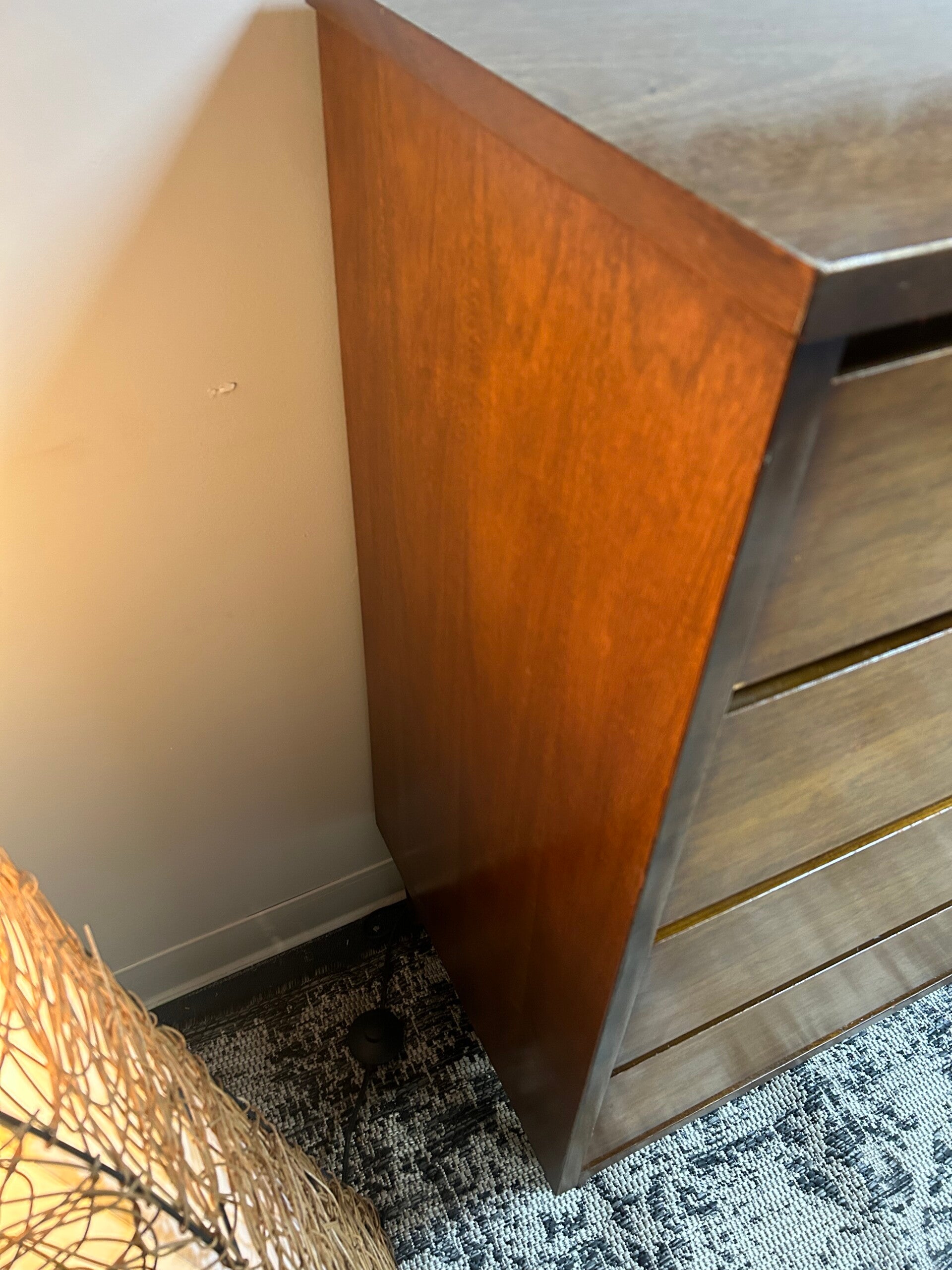 midcentury 4 drawer tall dresser with laminate top made by bassett