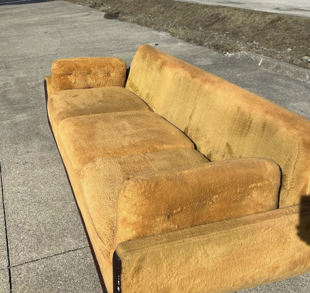 Mid Century Modern yellow couch gondola style