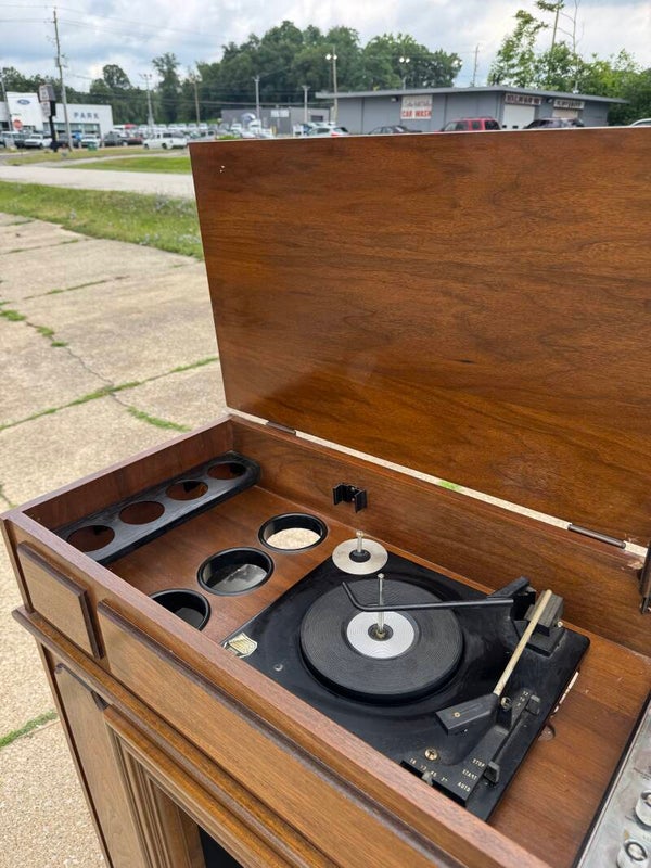Add timeless charm and retro functionality to your space with this Mid-Century Modern electric fireplace console. Featuring rich wood grain, clean lines, and paneled detailing, this statement piece offers the perfect blend of vintage elegance and modern practicality. Hidden inside is a classic built-in record player, giving you a unique way to enjoy warm vinyl sound by the soft glow of the fire. Whether you’re styling a cozy living room or retro-inspired lounge, this piece is both a conversation starter and a multifunctional marvel.