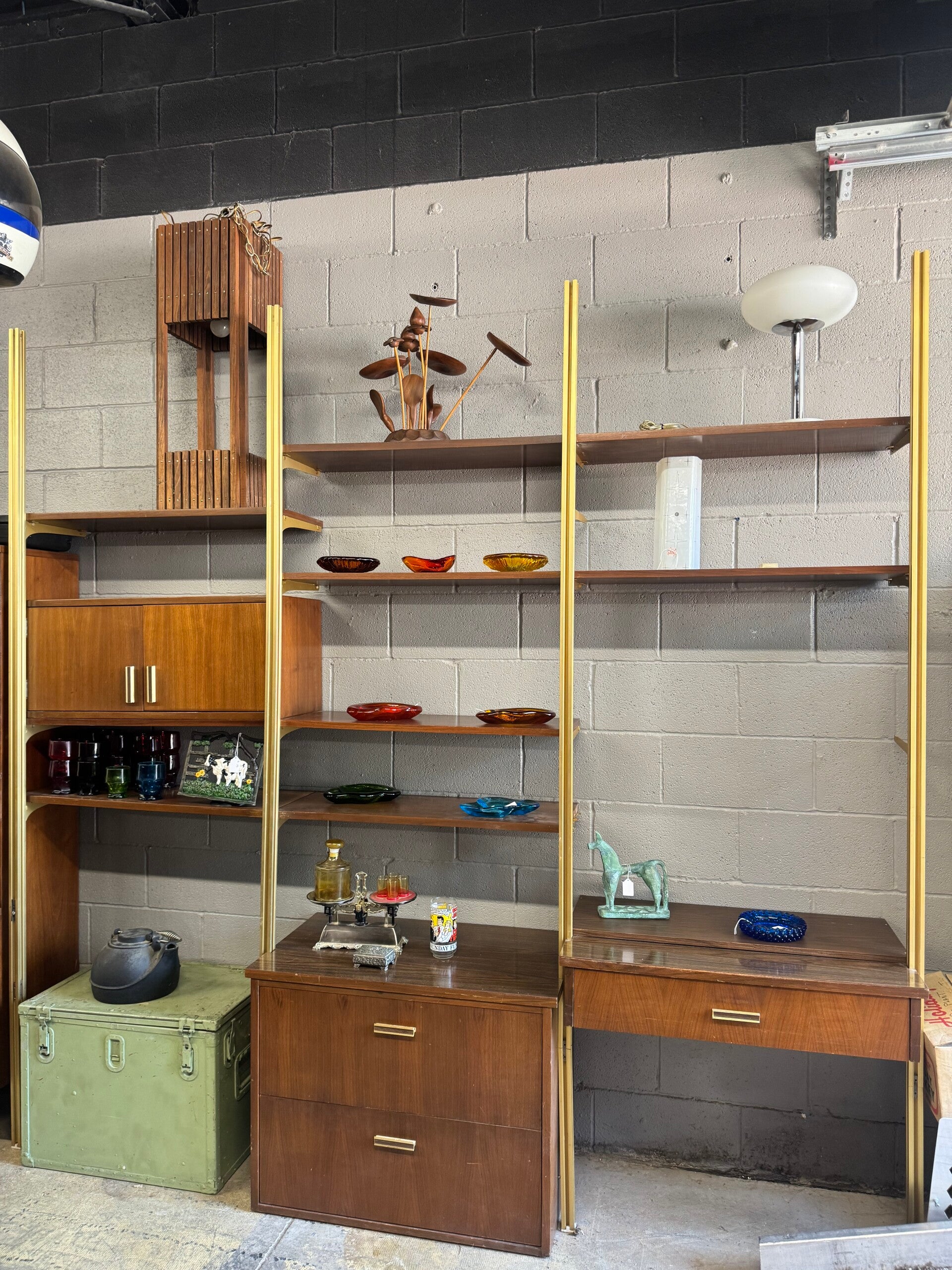 Unveiling a truly exceptional piece of design history, this George Nelson Omni System Wall Unit offers unparalleled modularity and iconic mid-century modern style. Designed by the legendary George Nelson for Omni, this comprehensive storage system is more than just furniture; it's a statement of sophisticated living and timeless design. This multi-bay system features a dynamic arrangement of adjustable shelves and elegant floating cabinets, including a spacious desk unit with drawers and additional storage cabinets. Configure it to perfectly suit your needs, whether for display, organization, or as a functional workspace.
