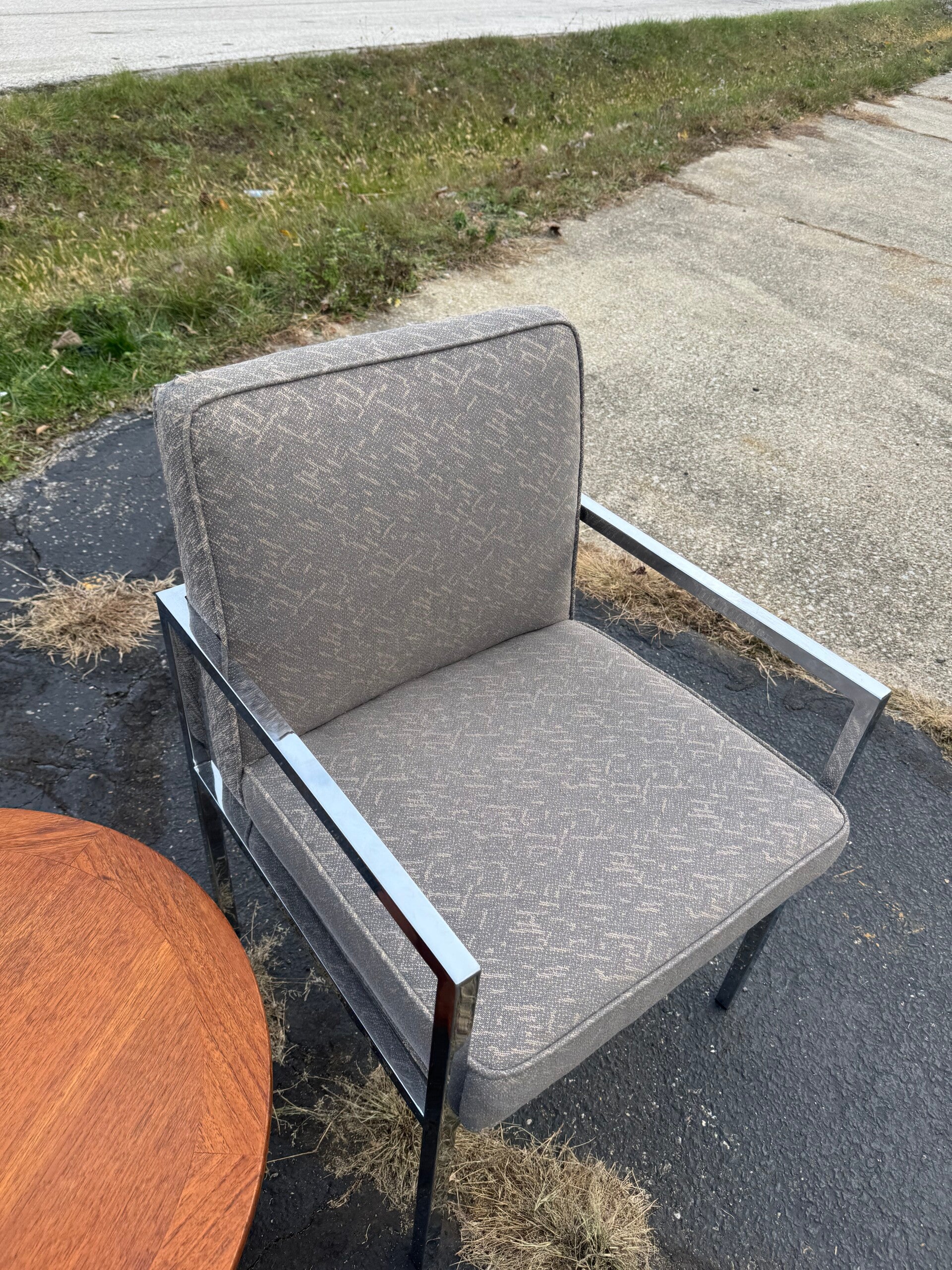 The neutral upholstered cushions complement the polished chrome frames, making this pair versatile enough for a living room, office, or lounge setting. Whether styled together as a matching set or used to anchor a seating area, these chairs bring a refined mid-century look with a distinctly modern edge.