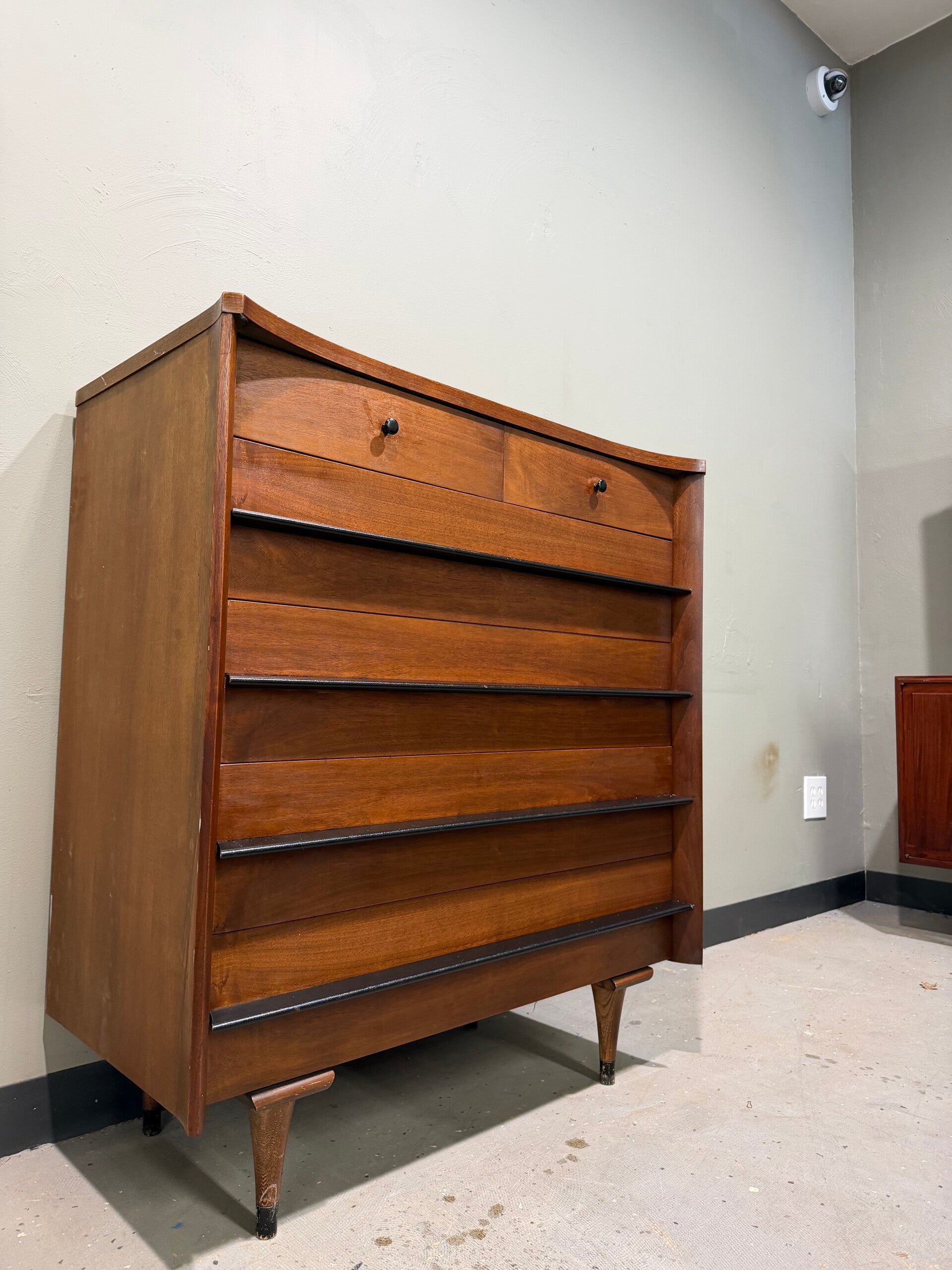 Mcm American of martinsville tall dresser with unique leather pull